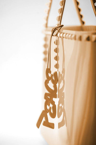 Add this peace charm to your favorite purse or Carmen Sol jelly tote! This jelly charm will add fun style to any look. Find it in your favorite color and add it to your bag today!