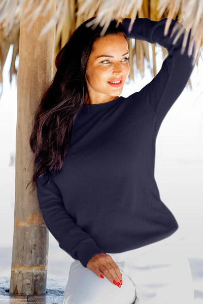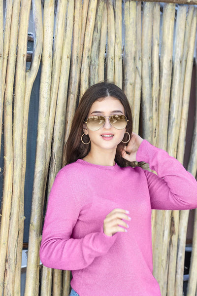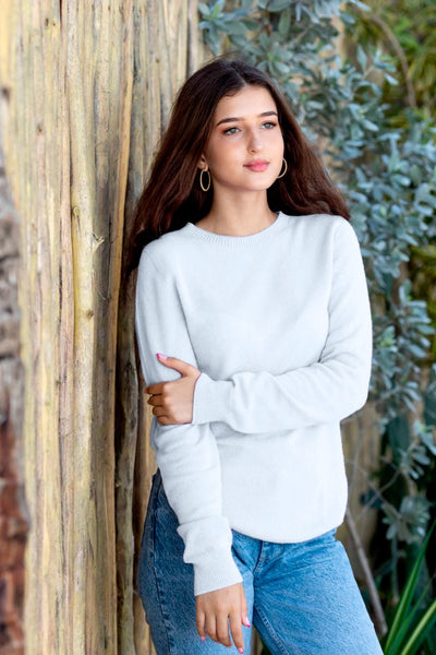 Round-neck sweater made from soft Italian cashmere yarn with a relaxed fit.
