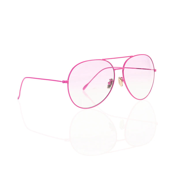 Classic unisex aviator with purple gradient lenses on fuchsia-tinted frames