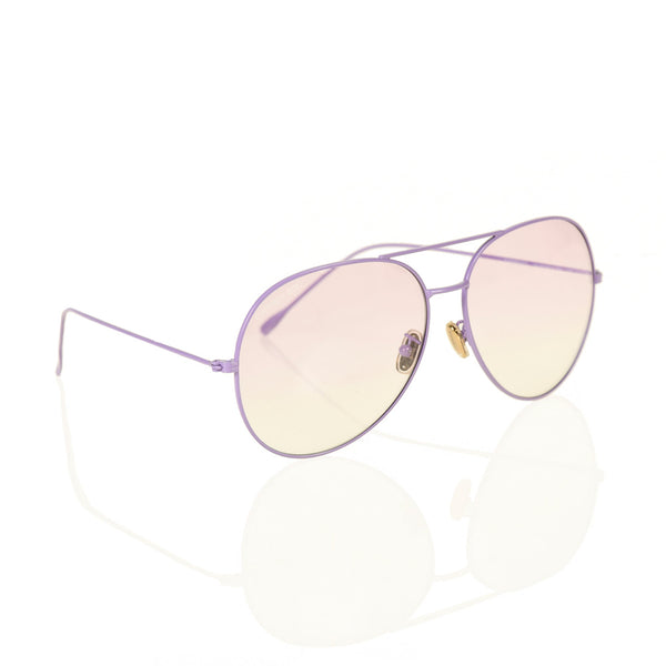 Classic unisex aviator with violet gradient lenses on violet-tinted frames